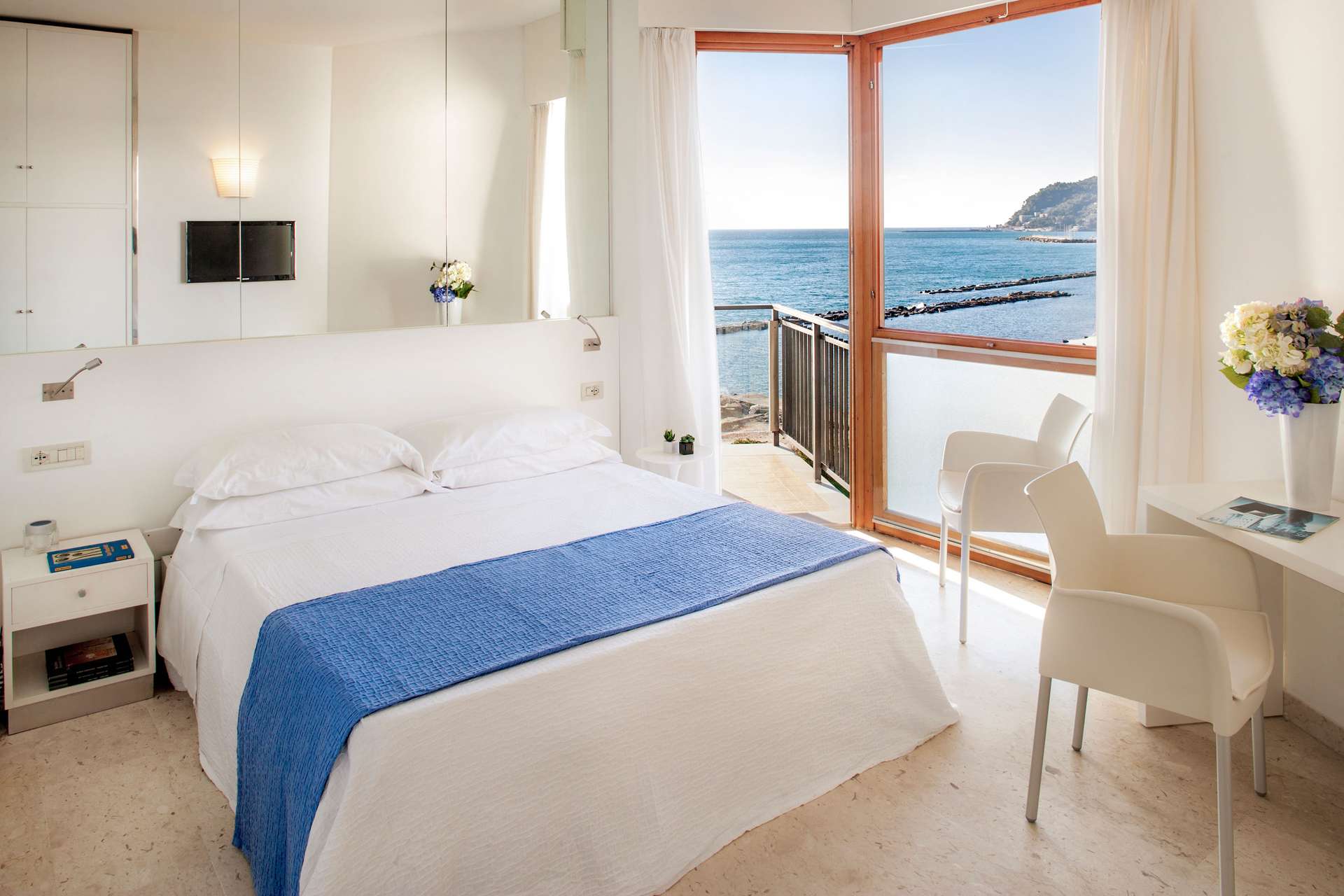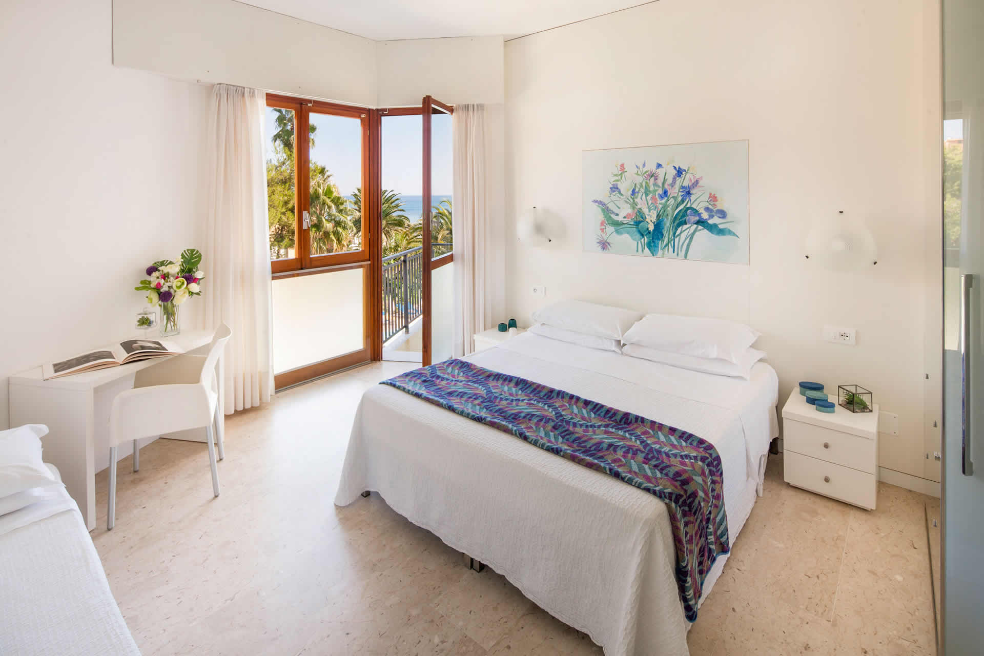 Each room is cosy, bright and essential, featuring a balcony or terrace with a side sea view.