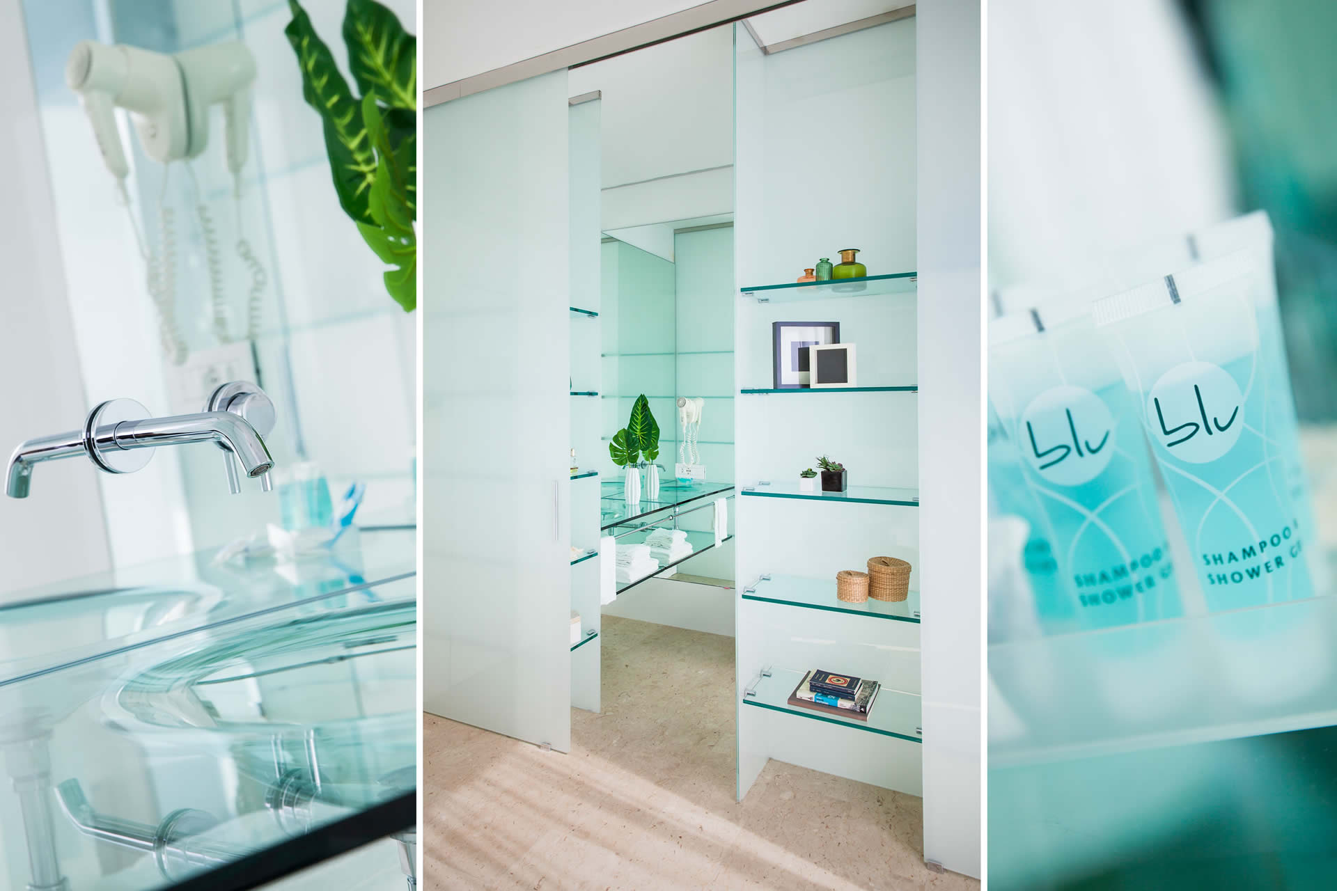 La luce del mare entra negli ambienti e si riflette nei dettagli, fino ai servizi in cristallo.