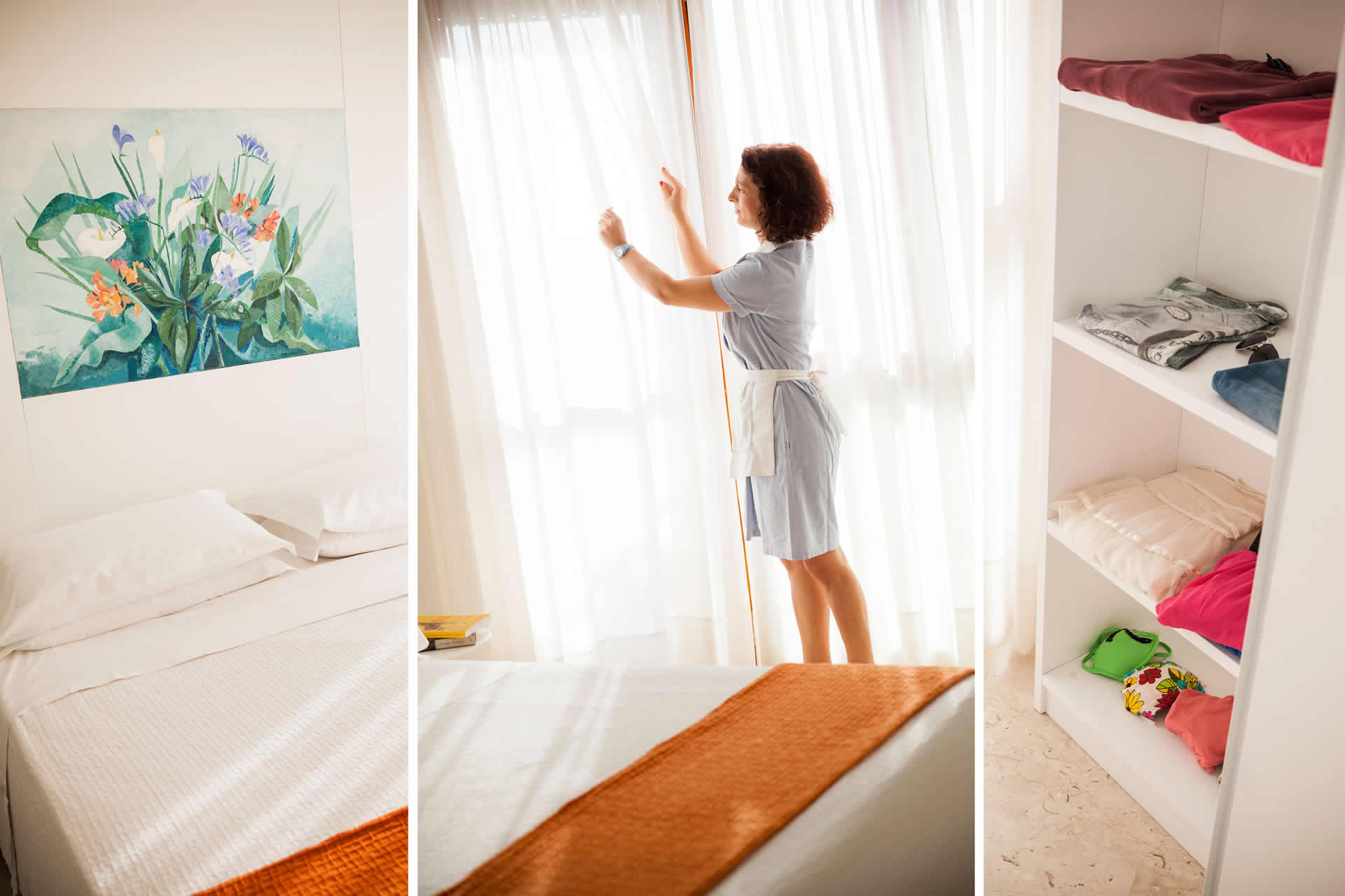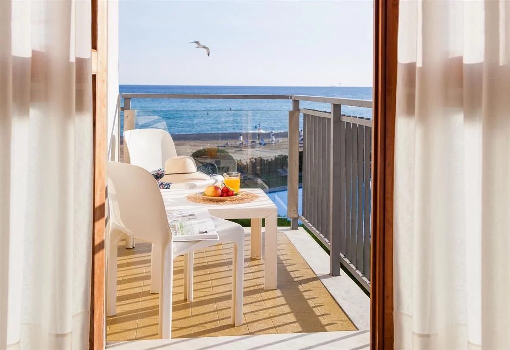 Ogni camera è accogliente, essenziale e luminosa, dotata di balcone o terrazza da cui si gode una panoramica vista laterale sul mare.