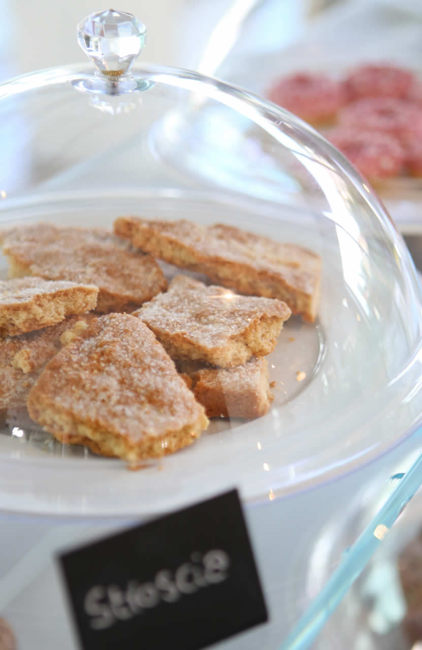 Scopri il nostro assortimento: soffici torte fatte in casa, fragranti brioches, spremute fresche, pane e focaccia calda, accompagnati dalle nostre confetture artigianali e dal miele biologico dell'Agriturismo Ca' Sottane. Non mancano salumi selezionati e la frutta di stagione, coltivata nella nostra azienda agricola biologica, Tèra de Prie.